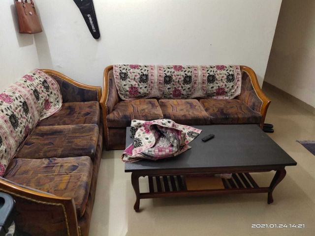 It’s 3 3 sofa with wooden center table, reason to sell is moving out of city