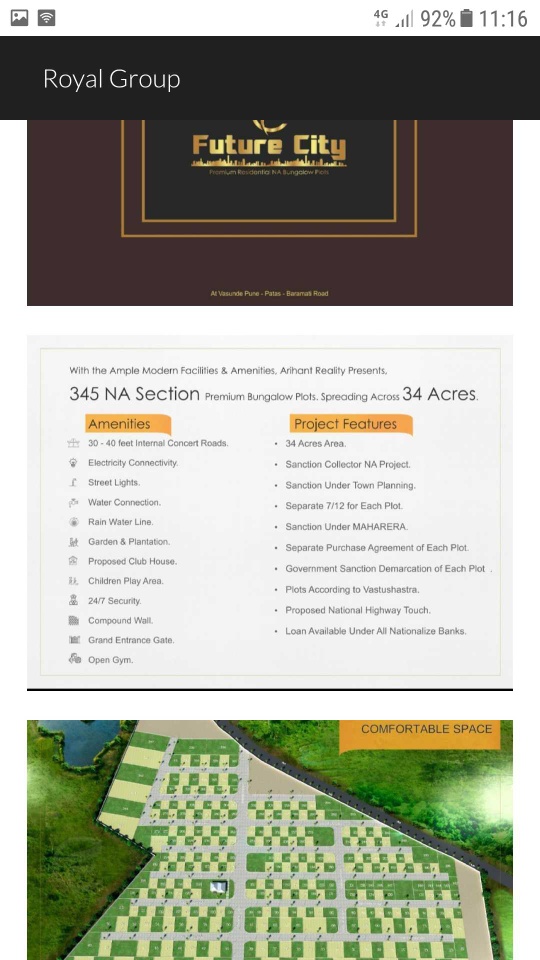ARIHANT REALITY has Brought an Ambiguous Project to offer the best piece to invest in Future City. It is not an Investment, it is Serenity going to be your asset your destination at Future City gives you the experience of living a life of High Standard. The Project Presents an Opportunity to take the top of the chances near Baramati, Daund & Purandar. It is situated at Vasunde Village in between Patas & Baramati. It is only 60km from Pune City.