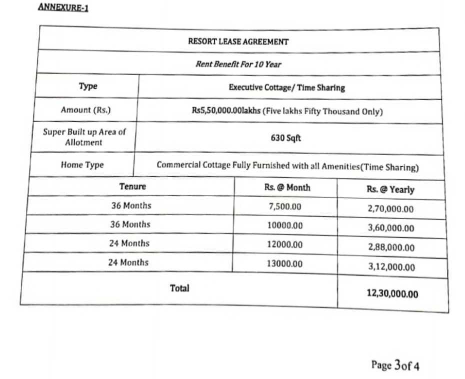 You can get lifetime payouts by purchasing a resort flat cottage in our D300 resort complex and leasing it out to us at the payment of Rs.12,50,000/-only