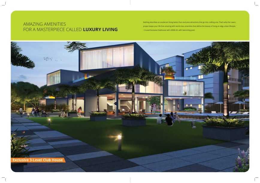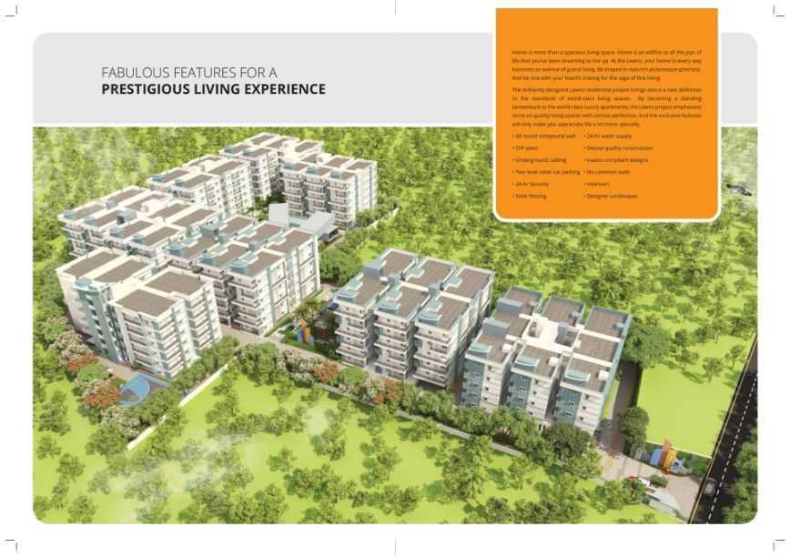 Amenities: The amenities in The Lawnz comprises of Landscaped Garden, Indoor Games, CCTV Cameras, Community Hall, Swimming Pool, Gymnasium, Play Area, Intercom, Rain Water Harvesting, Club House, Library, Cafeteria, Car Parking, Jogging Track, 24Hr Backup Electricity, Drainage and Sewage Treatment, Meditation Hall, Vaastu / Feng Shui, Multi-purpose Hall, Car Wash, Toddlers Pool, Security, Grocery Store, Kids Pool and Yoga, Aerobics and Meditation Room.